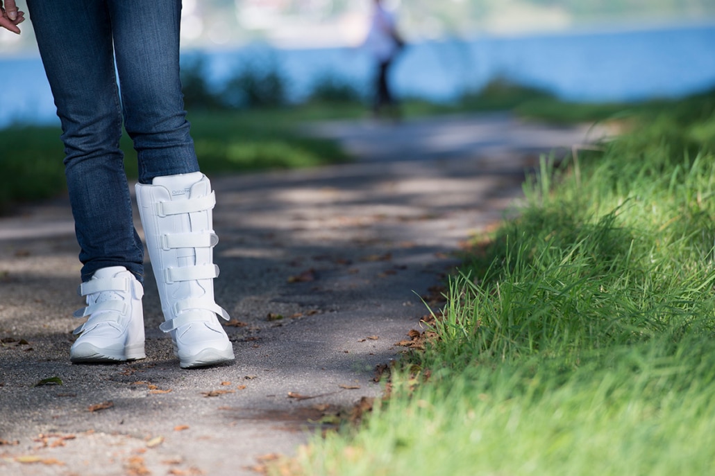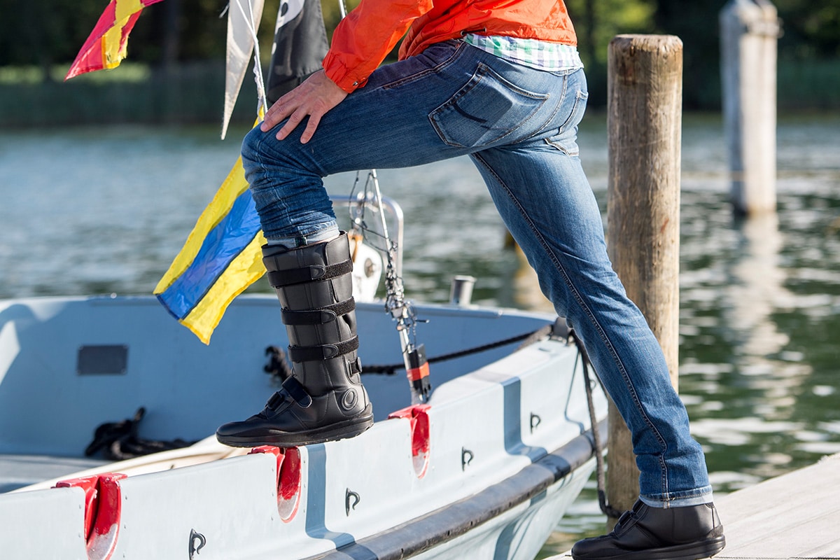 Für Verletzungen am Fuß oder Unterschenkel sind Therapieschuhe von Deutschenbaur wichtig für die Versorgung.